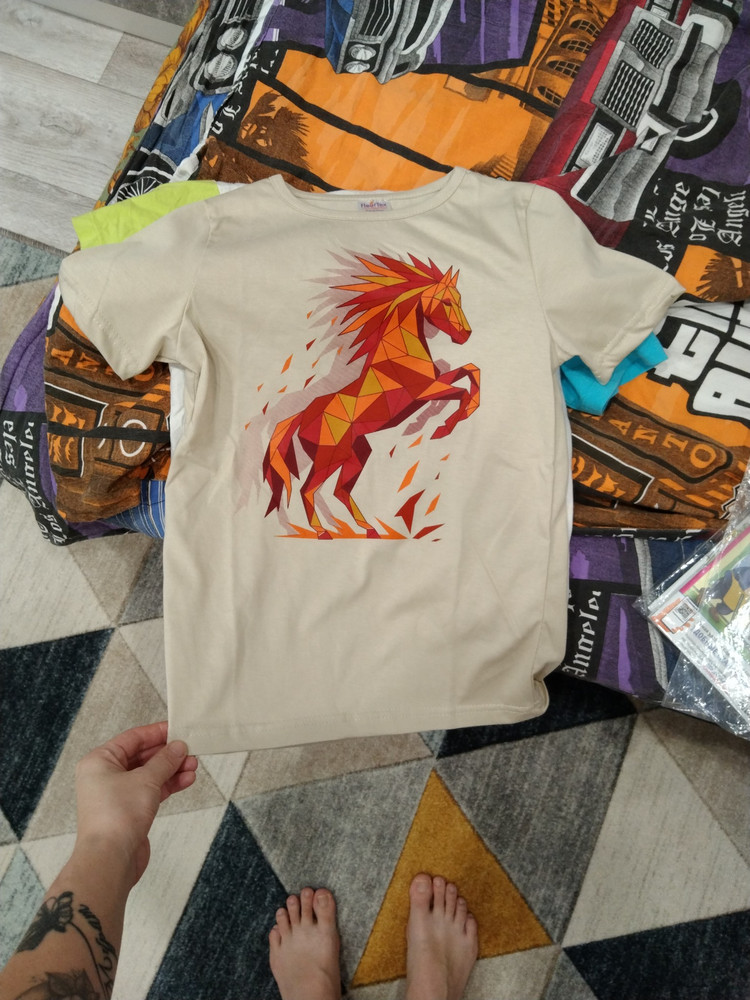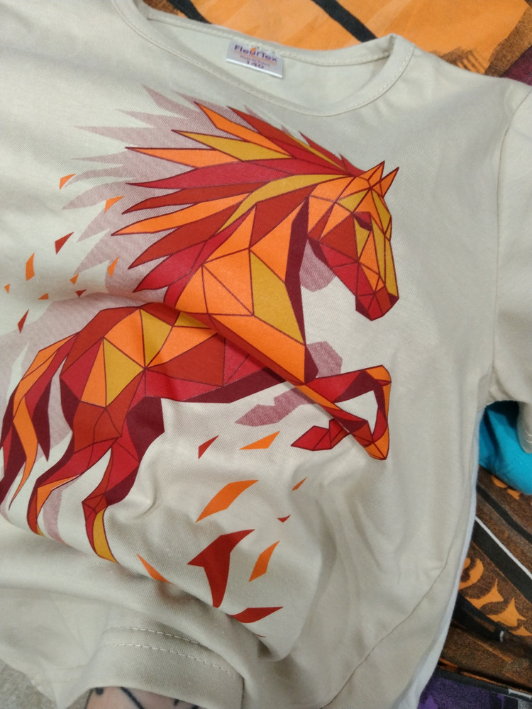Футболка не плохая.Принт яркий,но очень тонкий трикотаж и сильно тянется.отказ.