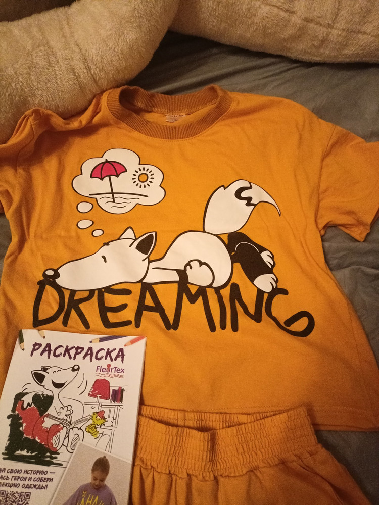 Размер соответствует, расцветка тоже) в подарок положили раскраску!) после стирки не линяет, не садится. Спасибо!)