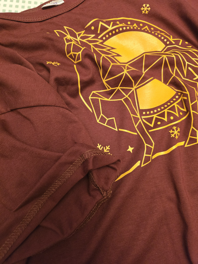 Верх пижамы — свободная однотонная футболка оверсайз с ярким принтом Лошади, выполненным в современном геометрическом стиле Low Poly. Такой дизайн выглядит эффектно и модно, создавая праздничное настроение. Классическая круглая горловина с аккуратной окантовкой не растягивается и сохраняет форму, а свободный крой не сковывает движений во сне или во время активных игр.